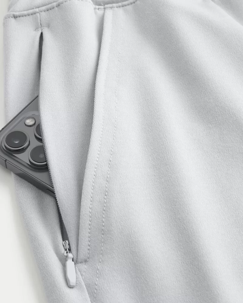 Ultra-comfortable sweatpants in super soft active fabric. Drawstring waist, pockets, right zipper pocket. Imported.