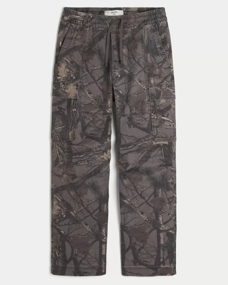 Ultra-comfortable twill pants designed with a baggy leg, pull-on drawstring waist and side cargo pockets. All-over camo pattern. Imported.