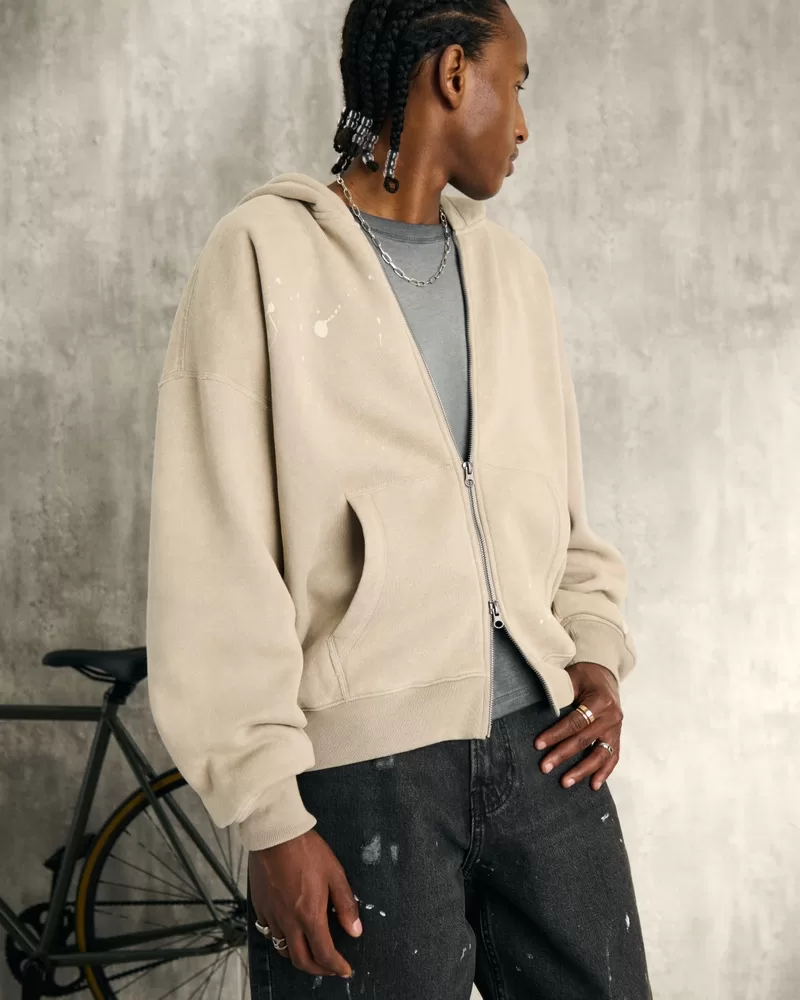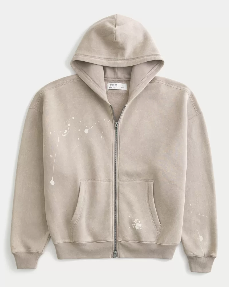 Baggy Cinch Paint Splatter Zip-Up Hoodie,Baggy Cinch Paint Splatter Zip-Up Hoodie