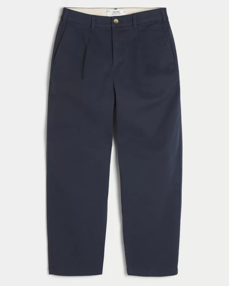 Classic, comfortable skater trousers designed with a baggy leg and pleats at the waist for a tailored look. Pockets. Imported.