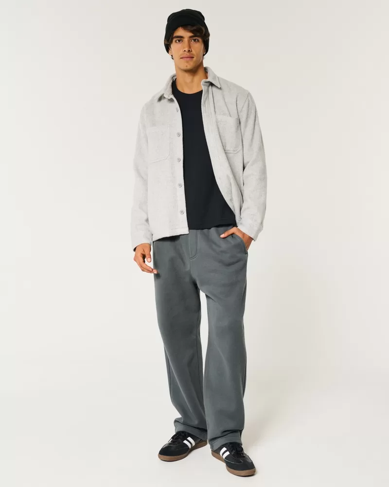 Super soft fleece sweatpants designed with a baggy leg and drawstring waist. Right zipper pocket. Imported.