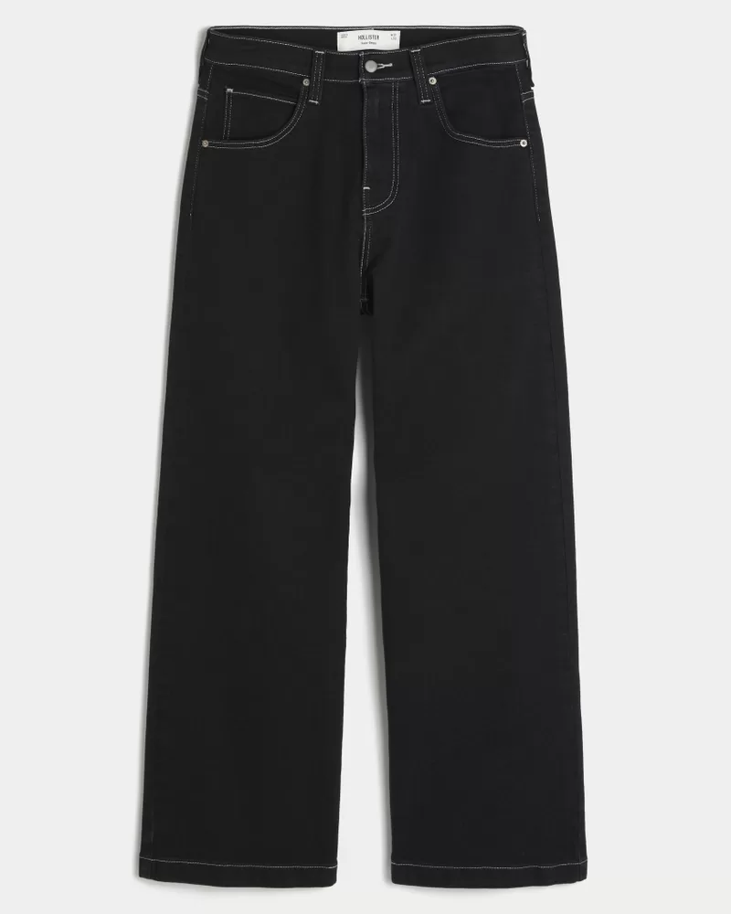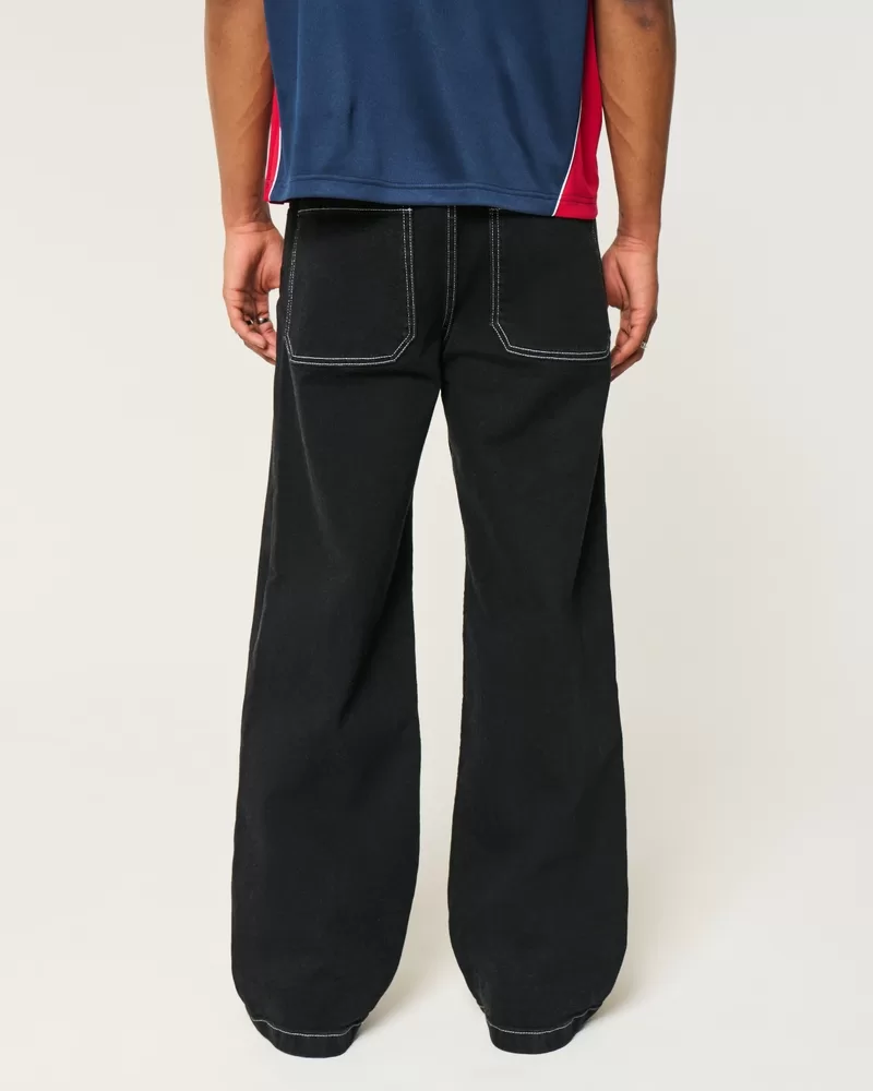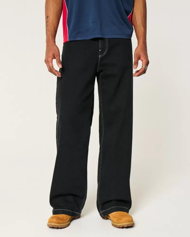Ultra-comfortable denim jeans in black, designed with a super baggy leg. Contrast stitching.