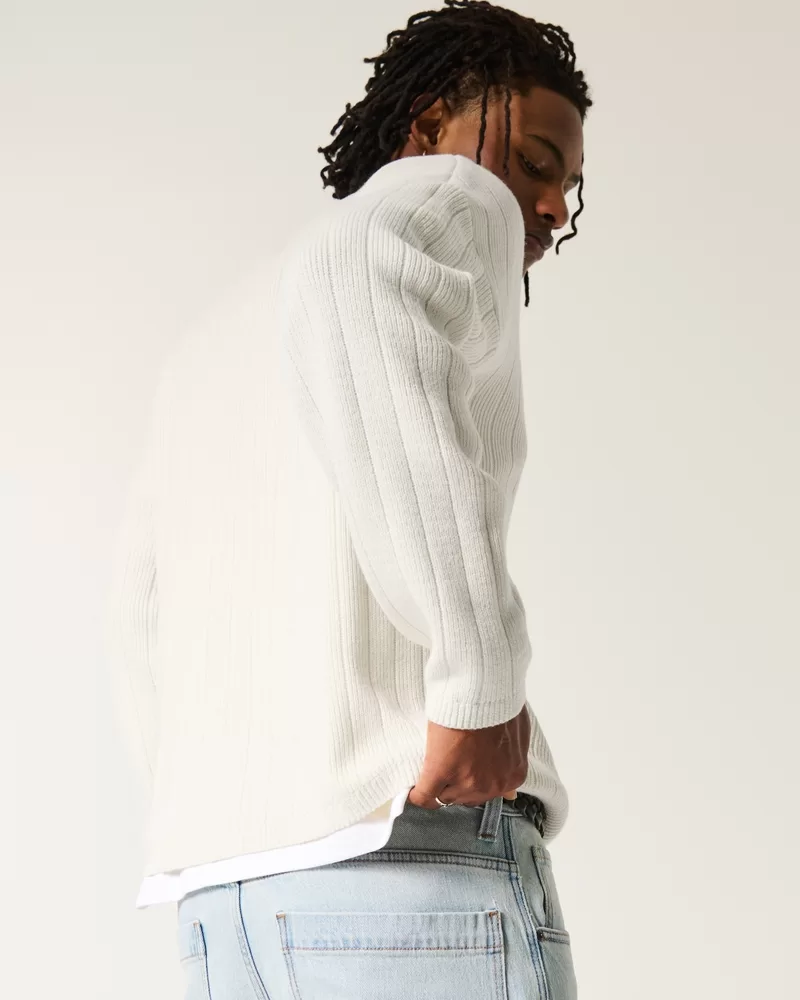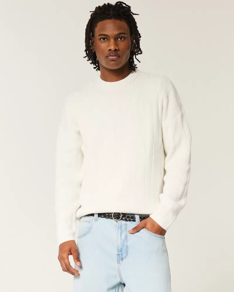 A super soft sweater with ribbed texture and a crew neckline. Long sleeves. Boxy Fit. Imported.