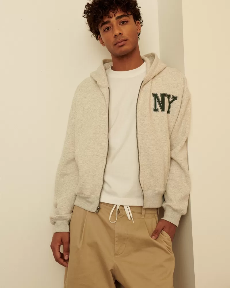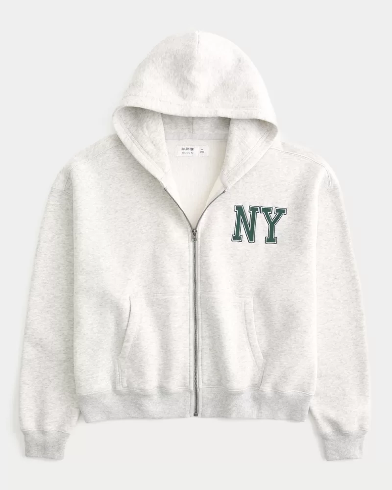 Boxy Crop NY Graphic Zip-Up Hoodie