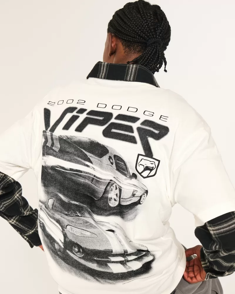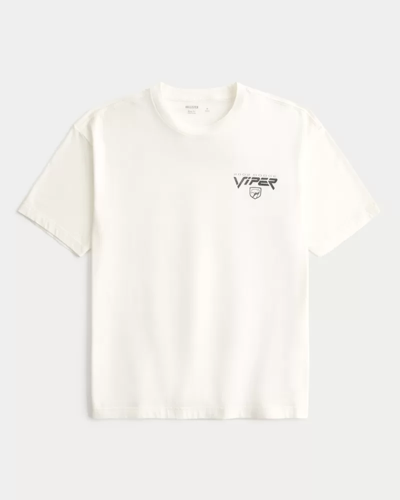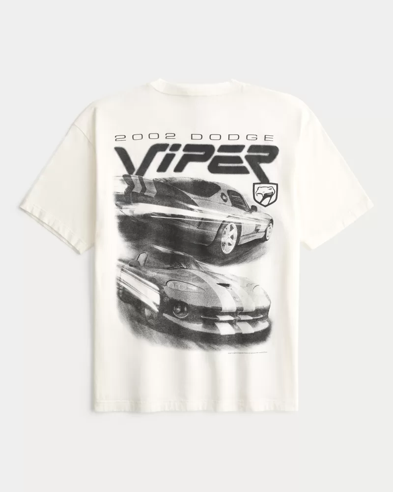 A super soft 100% cotton tee featuring official licensed Dodge Viper print graphics at the left chest and back. Crew neckline, short sleeves. Boxy Fit. Imported.