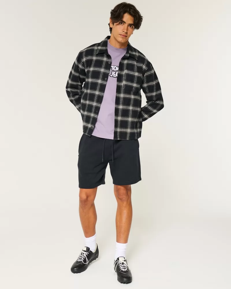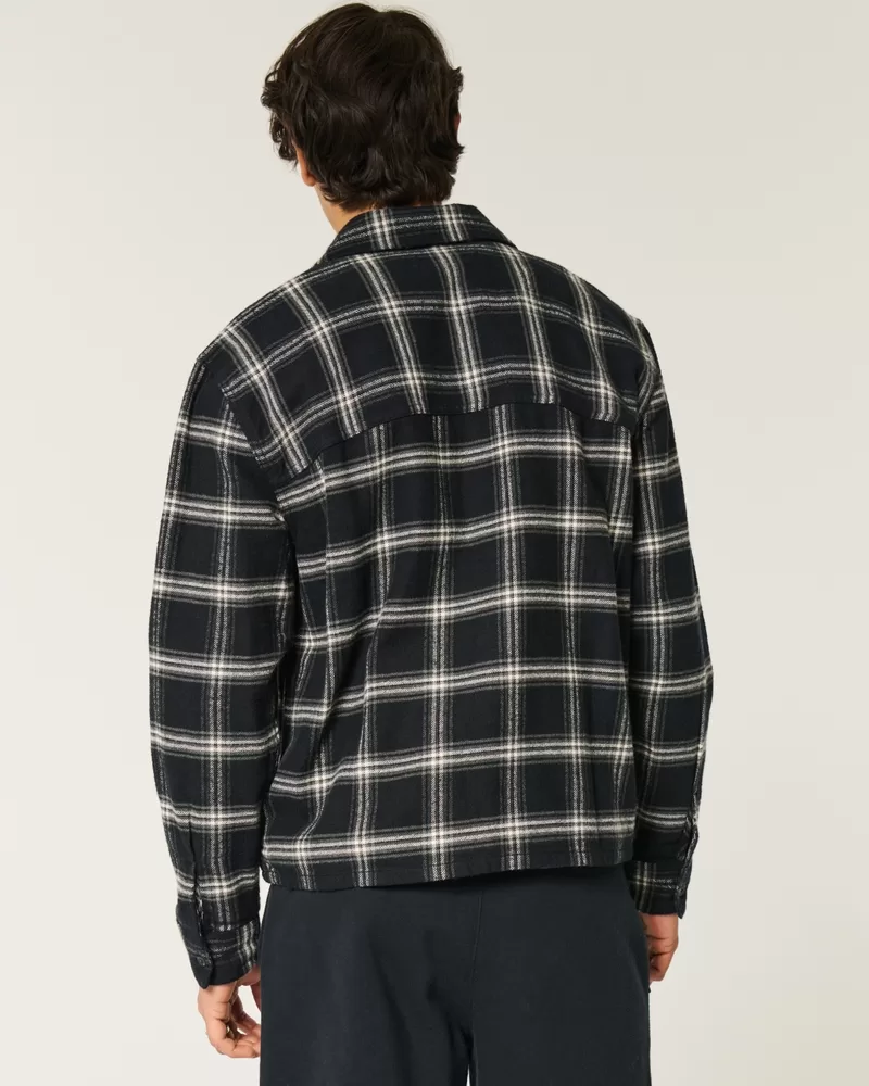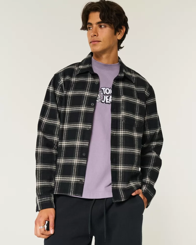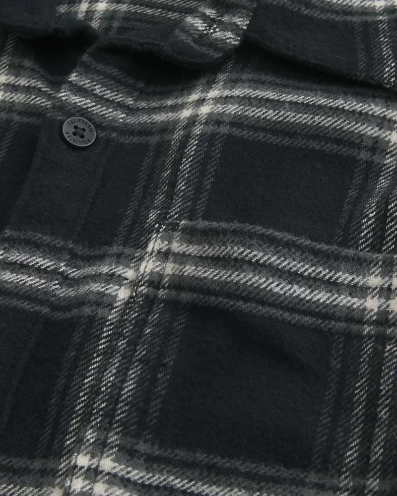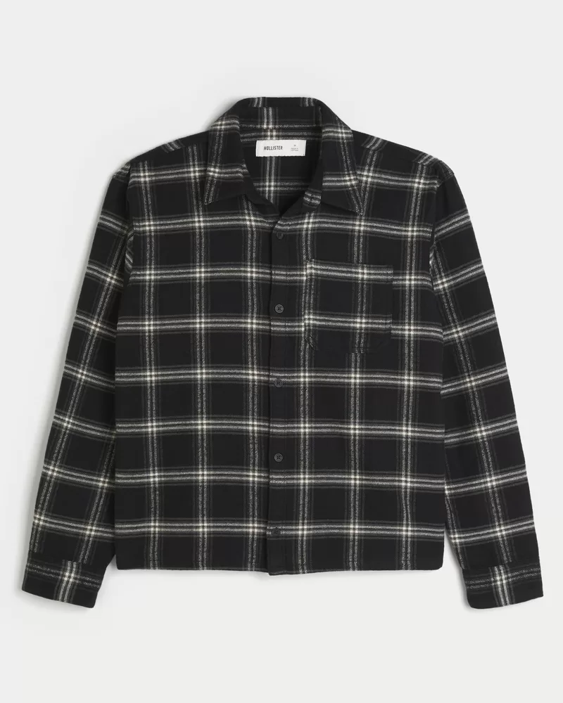 A super soft flannel shirt with a full button closure, longs leeves and collar. Left chest pocket. Boxy Fit.