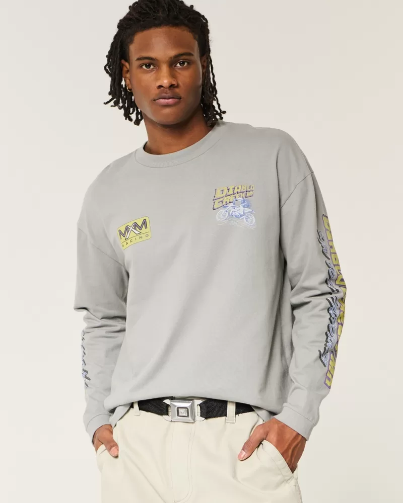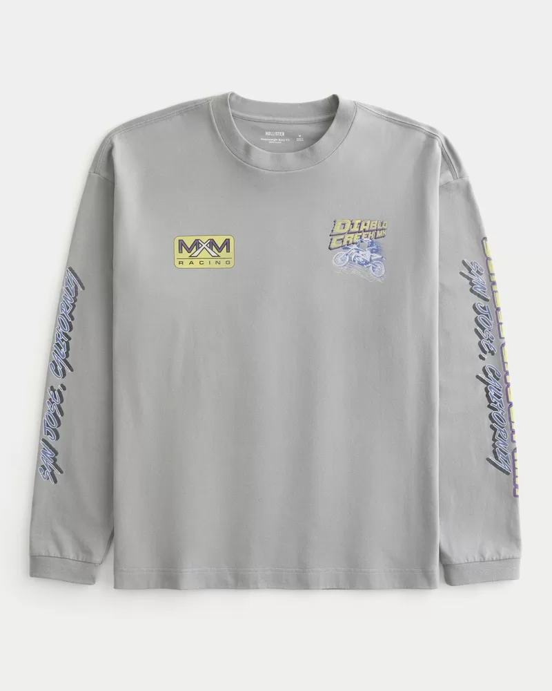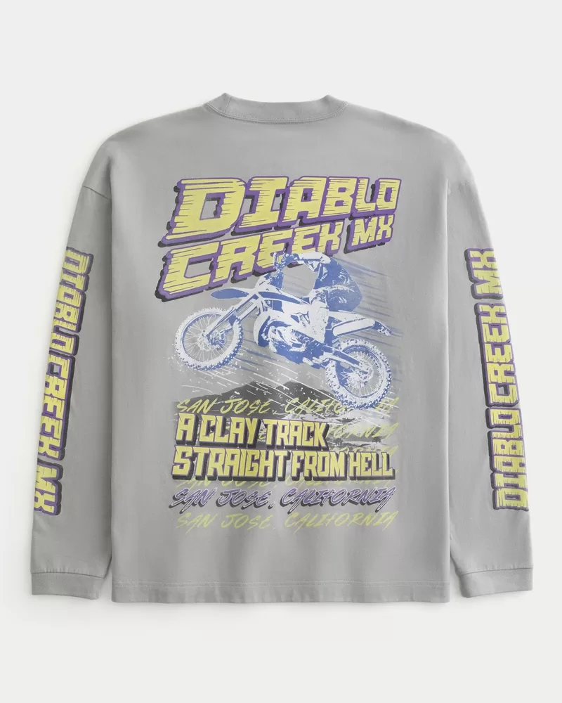 Made with super soft, heavyweight 100% cotton, this tee features Diablo Creek MXM Racing print graphics at the front, sleeves and back. Crew neckline, long sleeves. Boxy Fit. Imported.