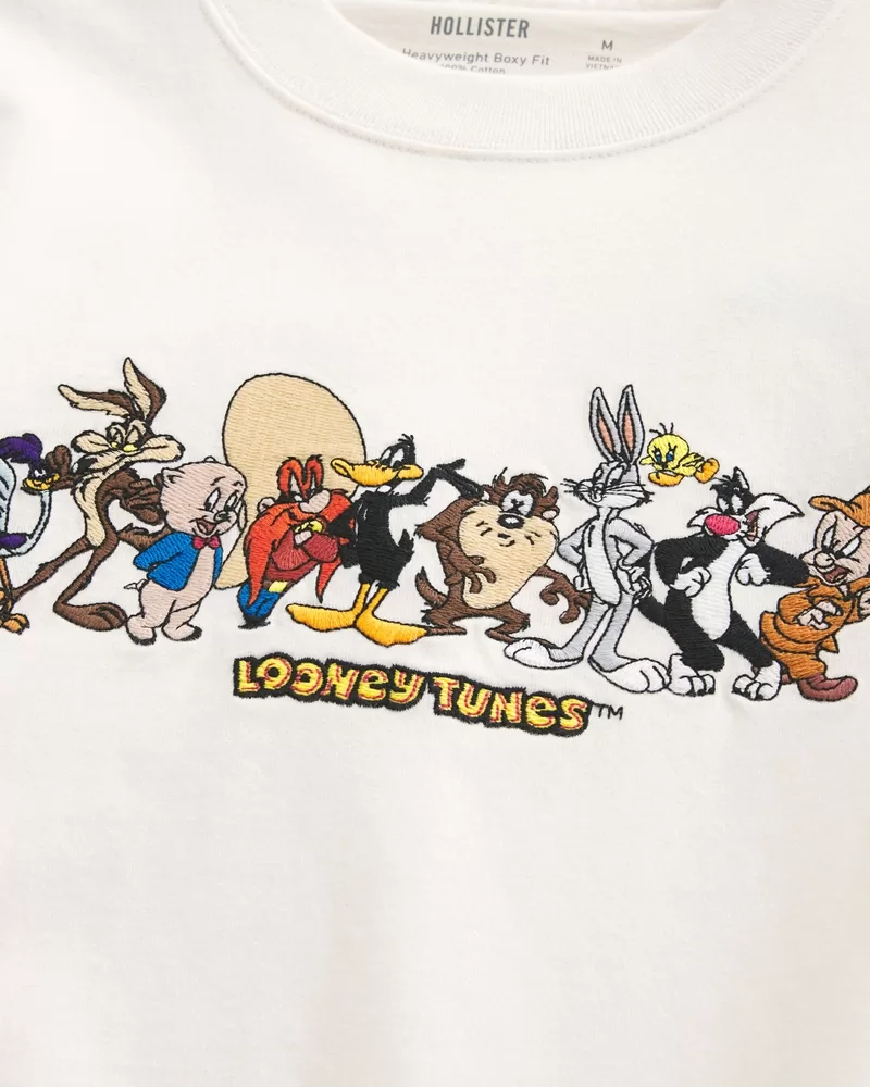 This ultra-comfortable tee is made with super soft, heavyweight 100% cotton and features official licensed Looney Tunes graphic embroidery. Crew neckline, short sleeves. Boxy Fit. Imported.