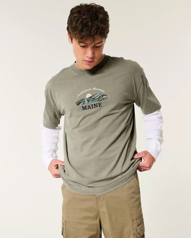 Made with 100% super soft, heavyweight cotton fabric, this tee features embroidered Saddleback Mountain Maine graphics, a crew neckline and short sleeves. Boxy Fit. Imported.