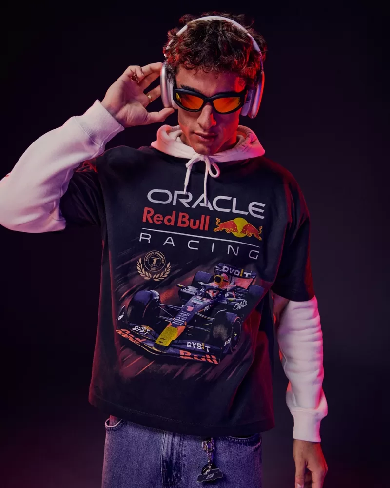 Made with 100% super soft heavyweight cotton, this tee features official licensed Oracle Red Bull Racing print graphics at the front and back. Crew neckline, short sleeves. Boxy Fit.