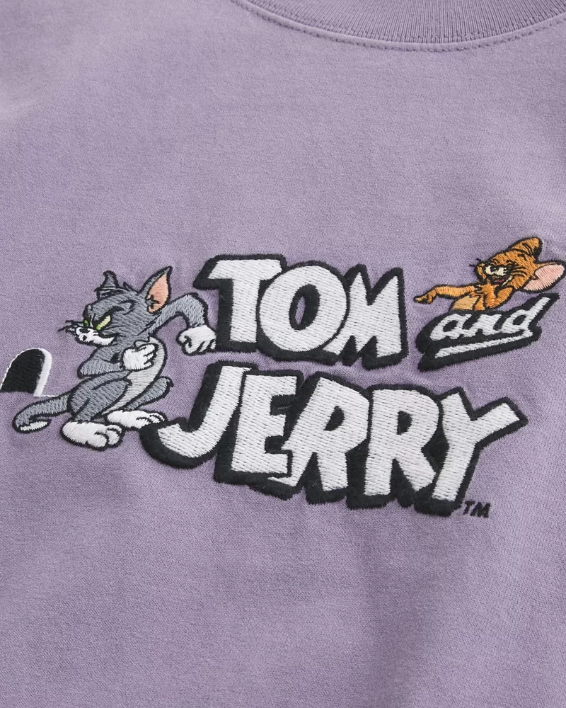 This ultra-comfortable tee is made with super soft, heavyweight 100% cotton and features official licensed Tom and Jerry graphic embroidery. Crew neckline, short sleeves. Boxy Fit. Imported.