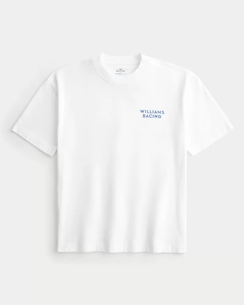 A super soft heavyweight 100% cotton tee featuring official licensed Williams Racing print graphics at the left chest and back. Crew neckline, short sleeves. Boxy Fit. Imported.