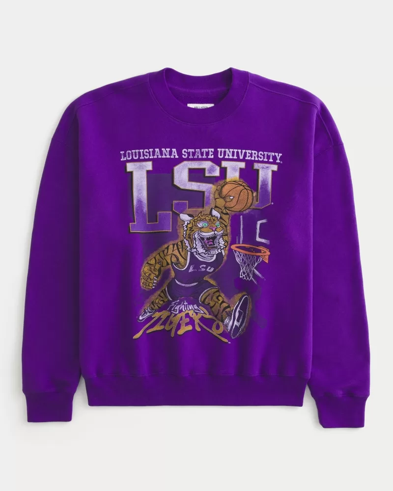 Boxy LSU Tigers Graphic Crew Sweatshirt