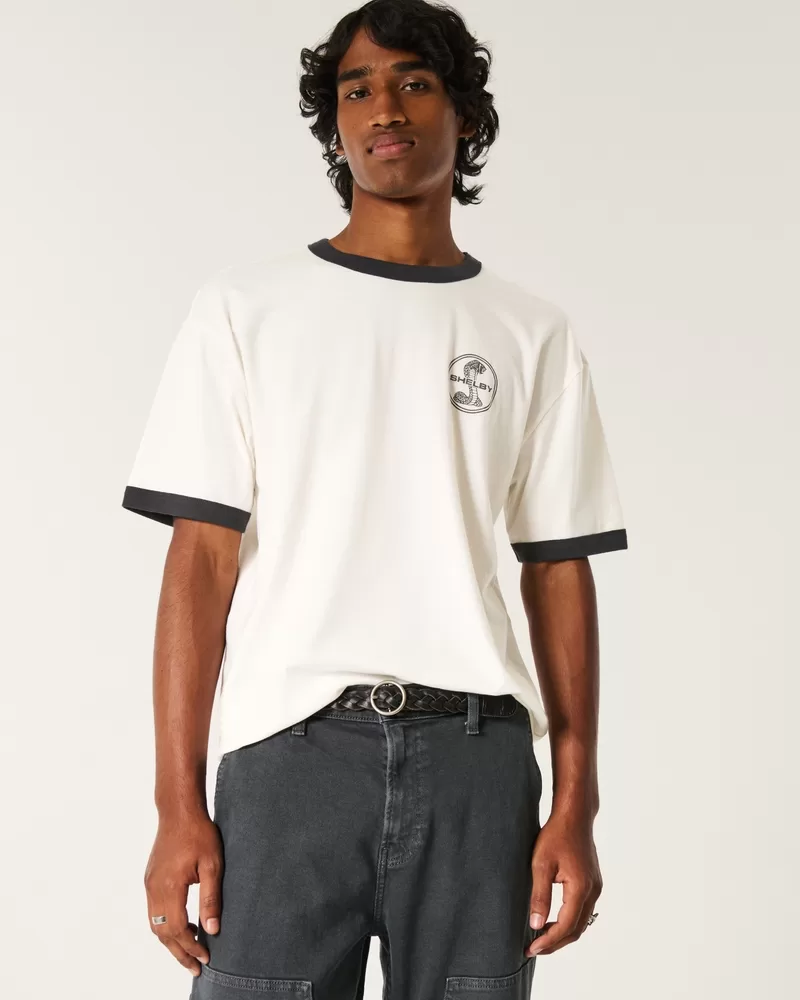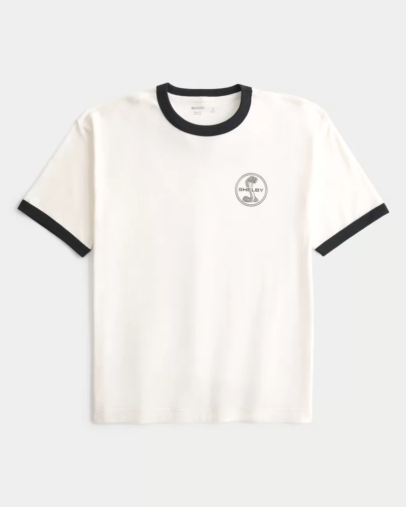 A super soft 100% cotton tee featuring an official licensed Shelby print graphic at the left chest. Crew neckline, short sleeves, contrast trims. Boxy Fit. Imported.