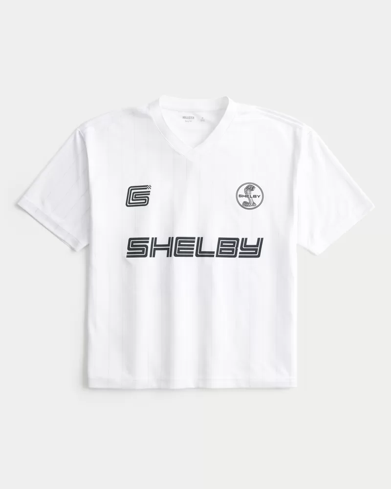 Comfortable and super soft, this soccer jersey features official licensed Shelby print graphics at the front and number graphics at the back. V-neckline, short sleeves. Boxy Fit. Imported.