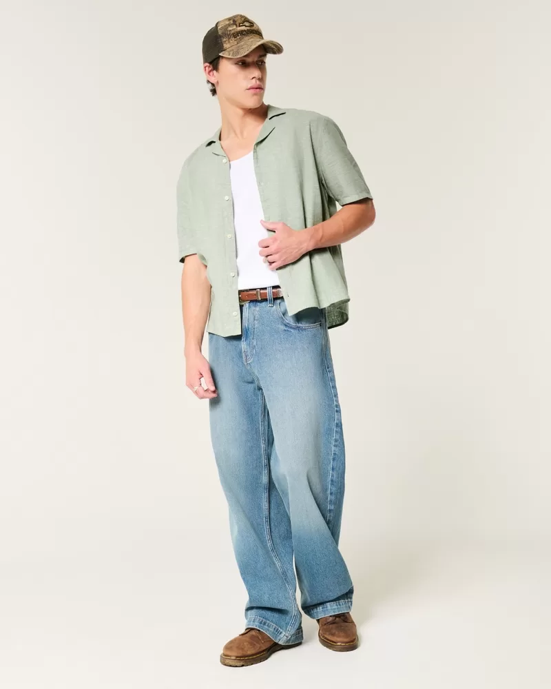 Boxy Short-Sleeve Linen-Blend Shirt