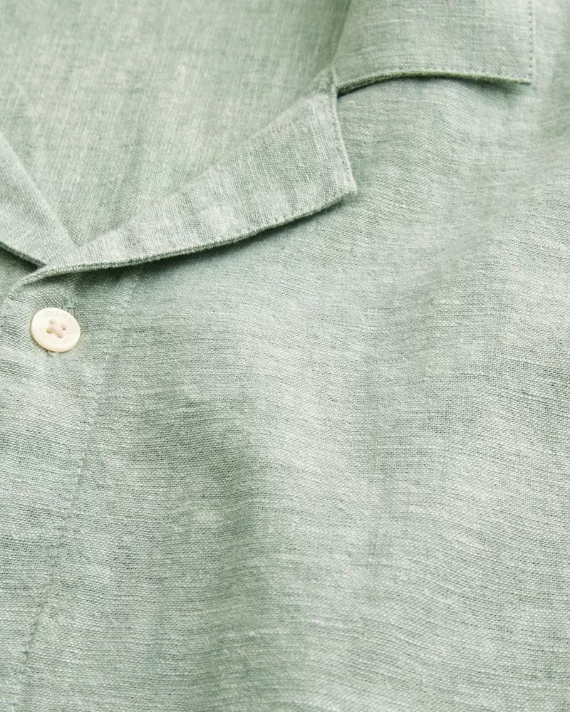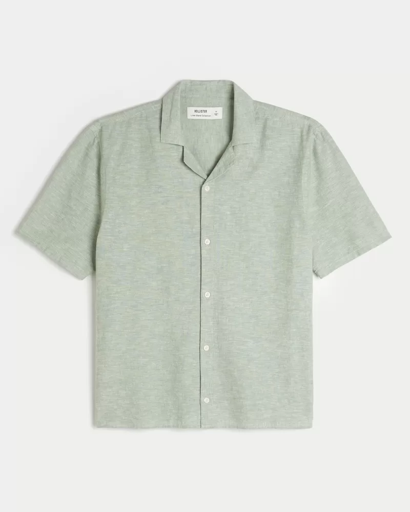 This classic button-through shirt is made with a soft linen blend. Collar, short sleeves. Imported.