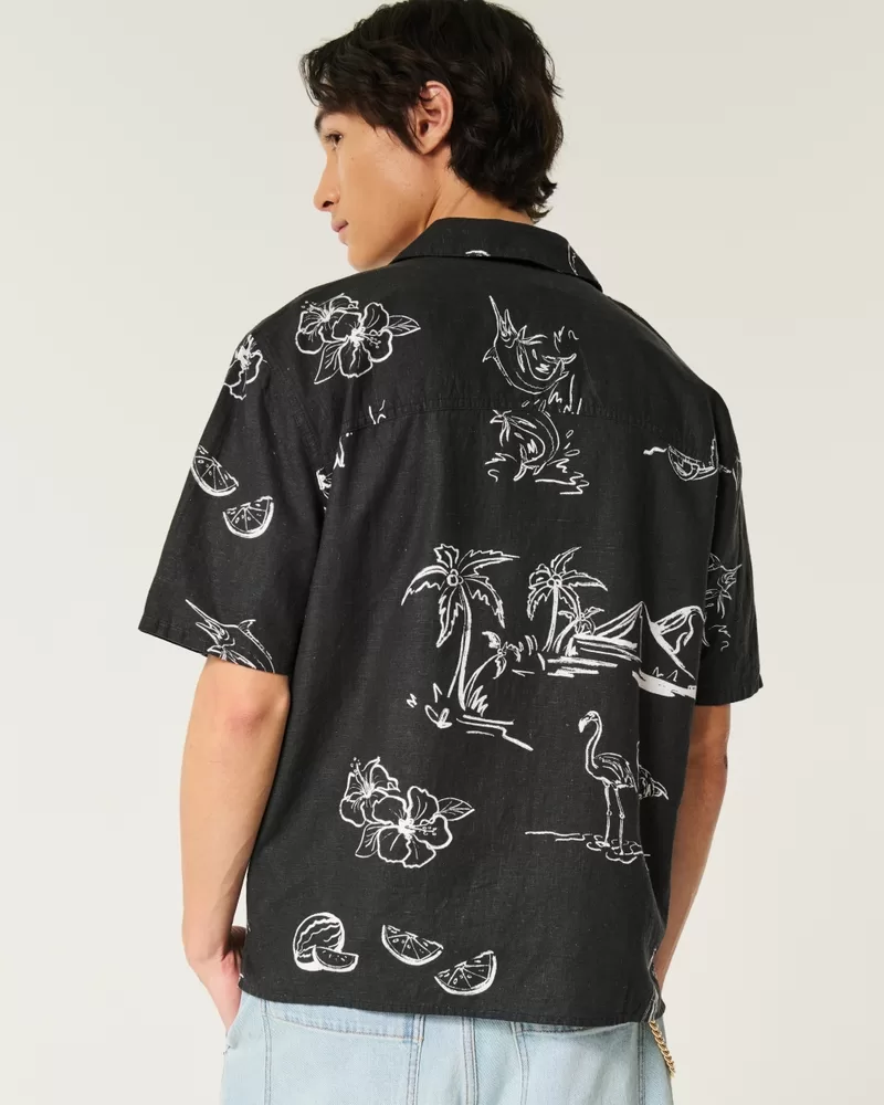 Boxy Short-Sleeve Linen-Blend Shirt