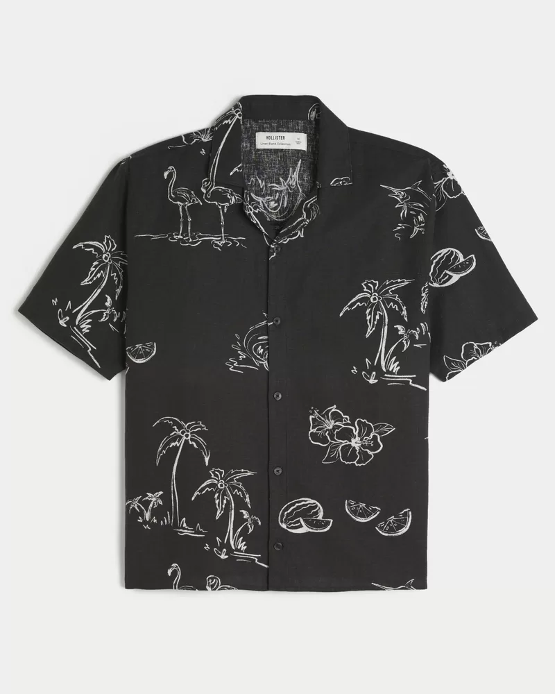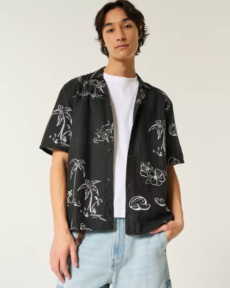 A classic shirt made with a soft linen blend. Full button closure, collar, short sleeves. Boxy Fit. Imported.