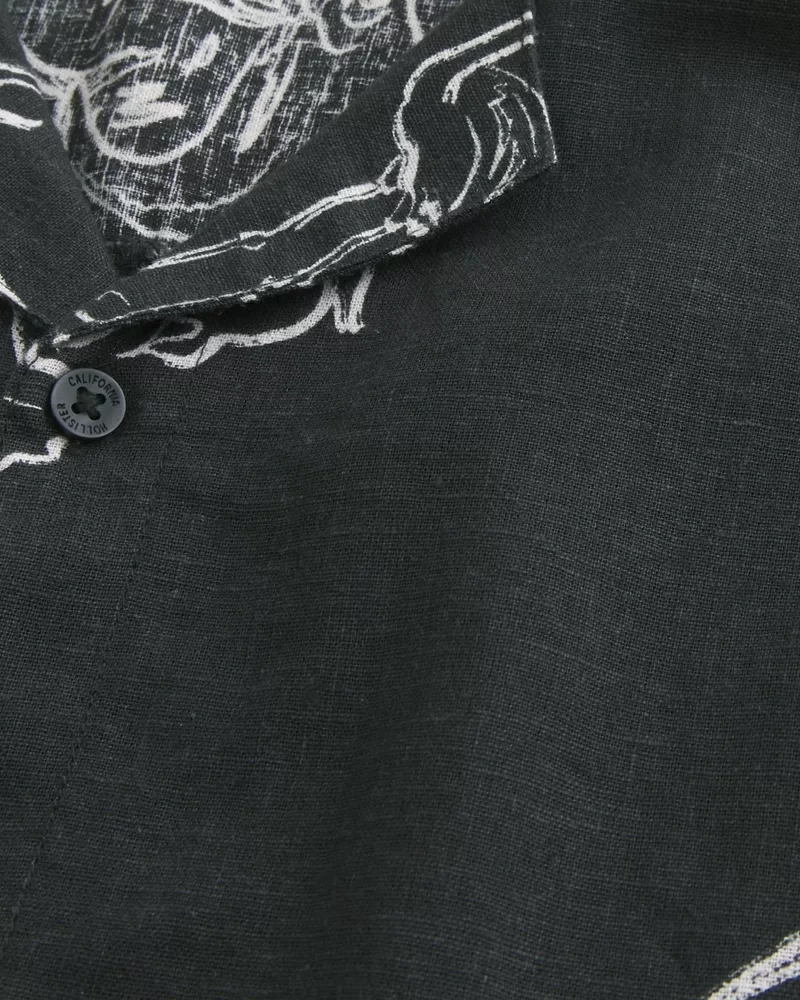 A classic shirt made with a soft linen blend. Full button closure, collar, short sleeves. Boxy Fit.