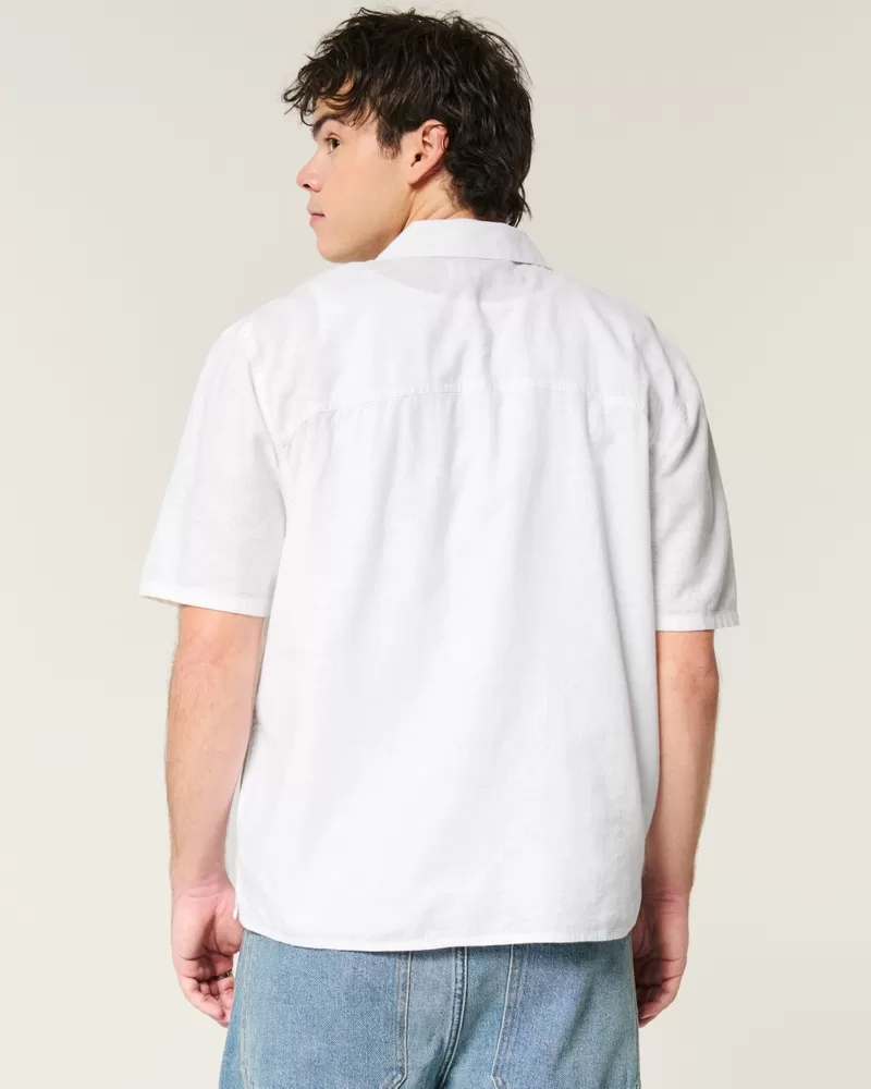Boxy Short-Sleeve Linen-Blend Shirt