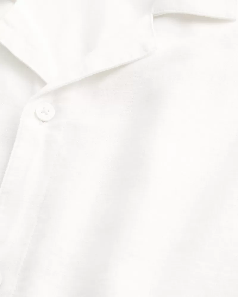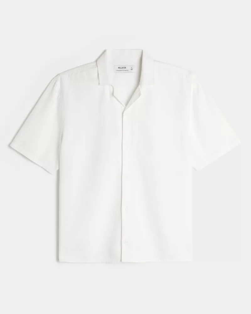 This classic button-through shirt is made with a soft linen blend. Collar, short sleeves. Imported.