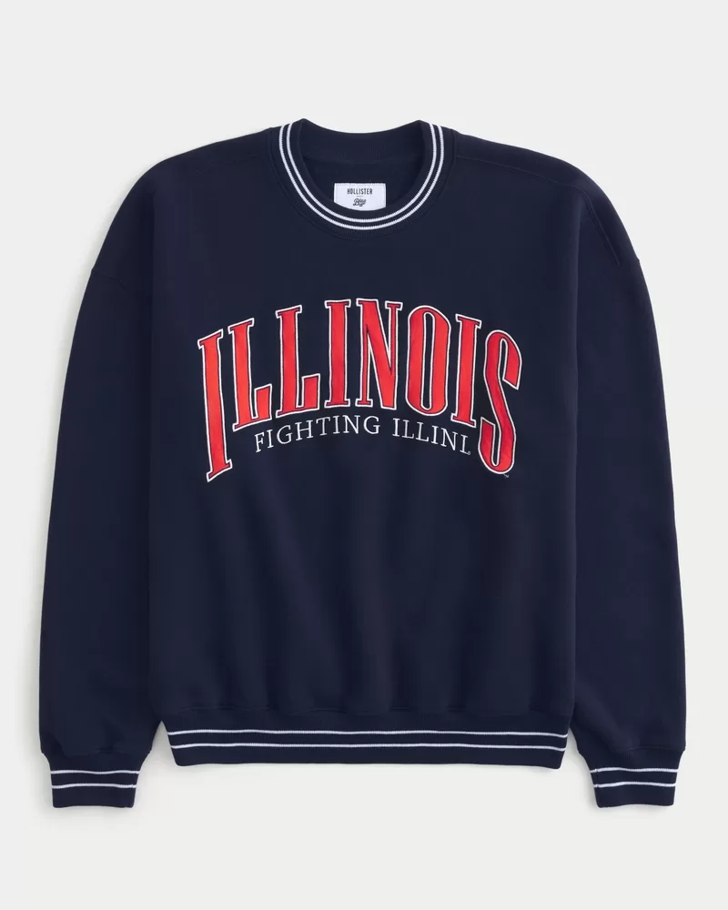 Boxy University of Illinois Fighting Illini Graphic Crew Sweatshirt
