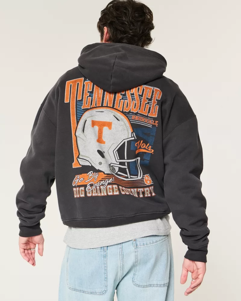 A super soft fleece hoodie featuring official licensed University of Tennessee Vols print graphics at the left chest and back. Hood, front pouch pocket, long sleeves. Boxy Fit. Imported.