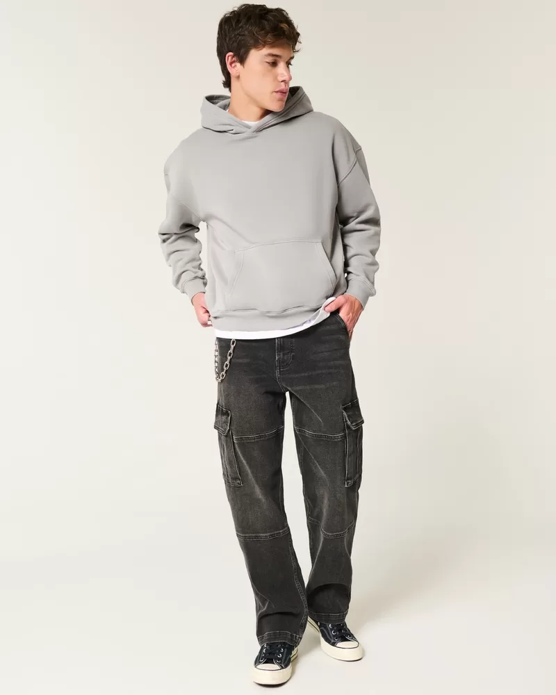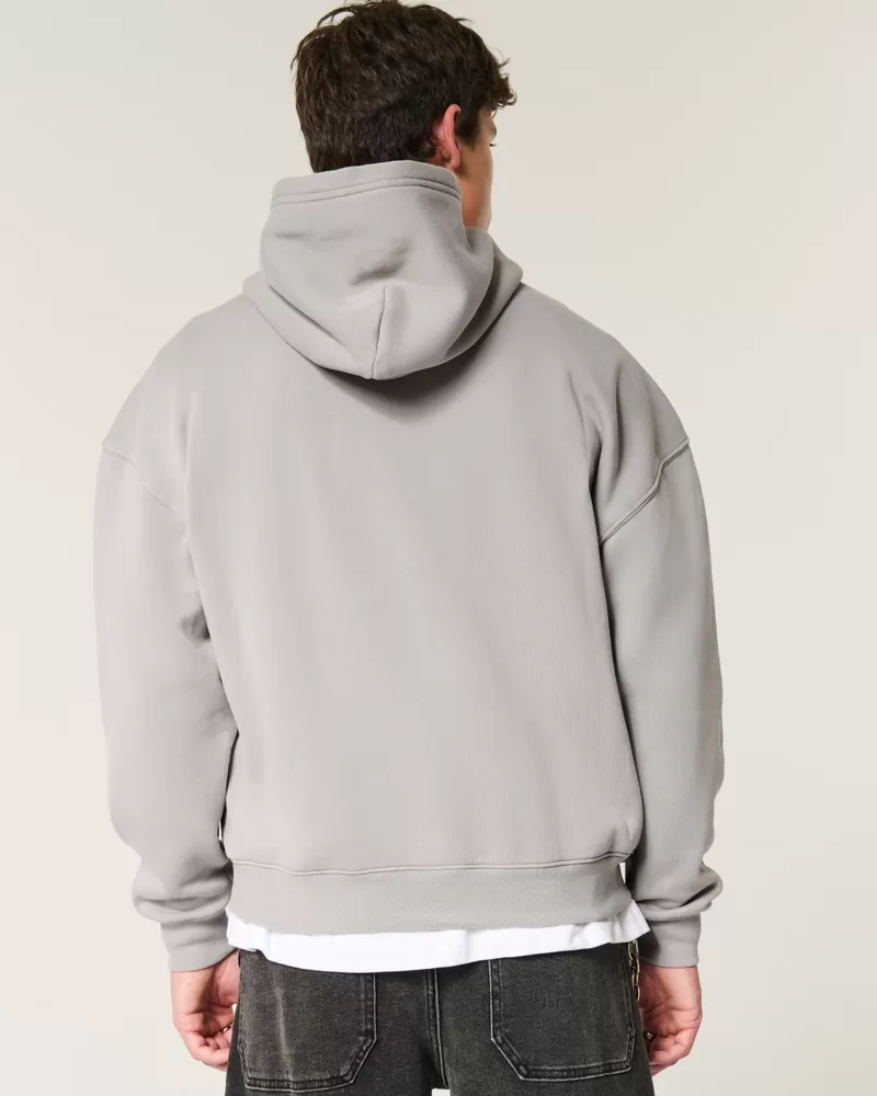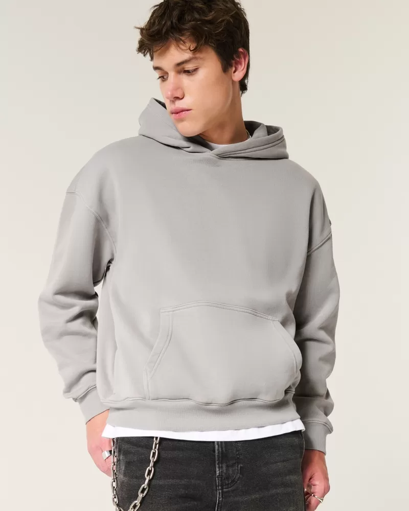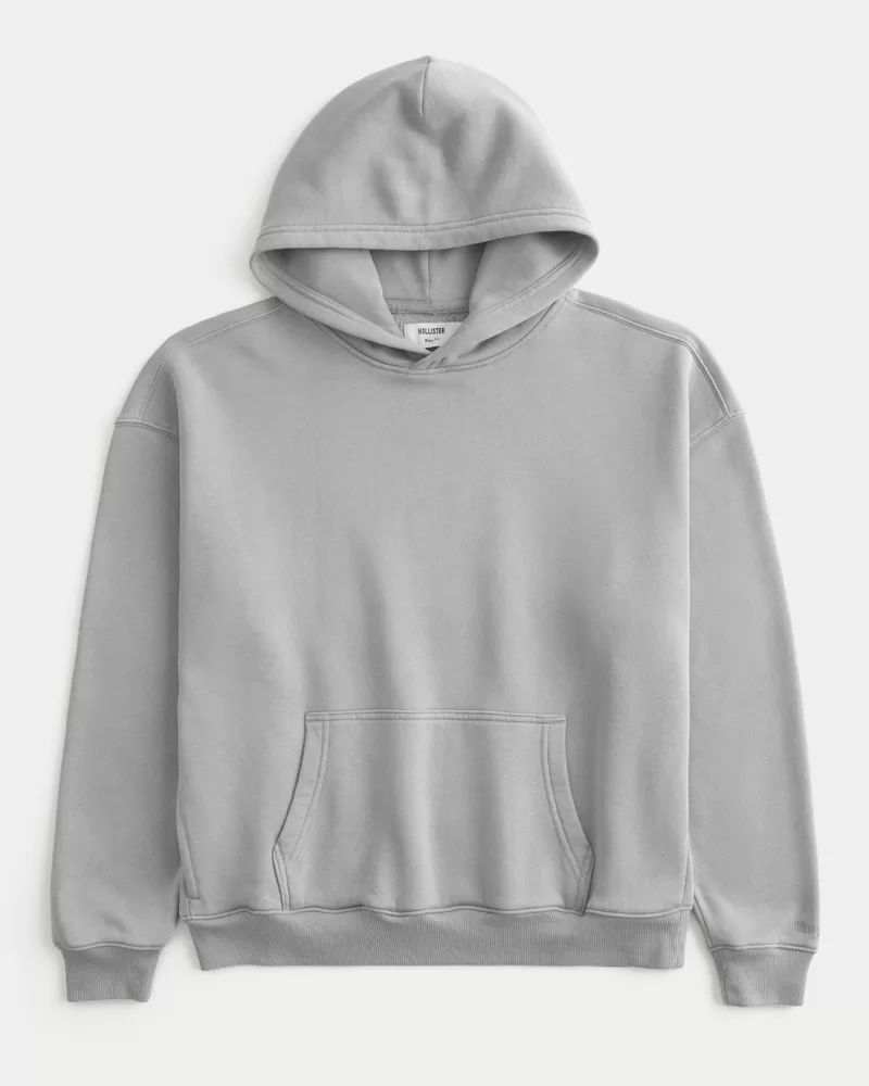 This super soft fleece hoodie has long sleeves and a front pouch pocket. Washed look, hood. Boxy Fit. Imported.
