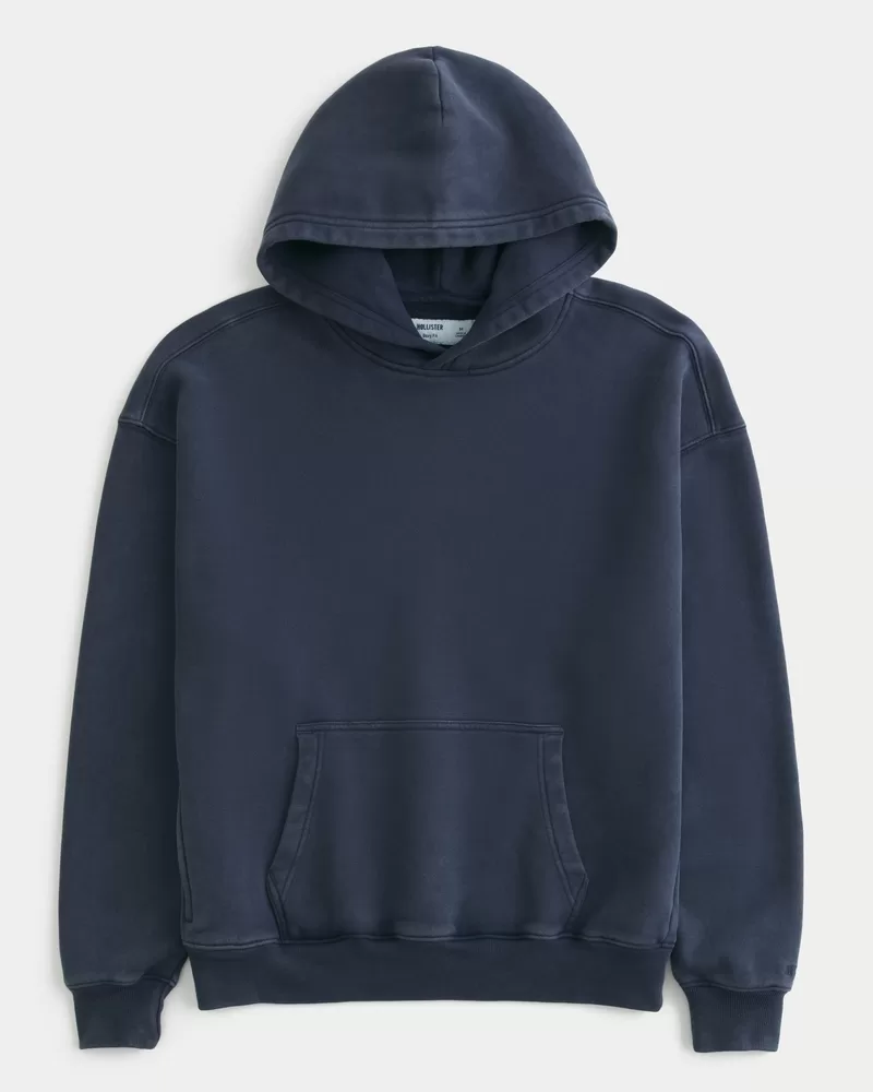 A super soft fleece hoodie with a double fleece-lined hood, hidden zipper pockets and an embroidered left sleeve logo detail. Washed look. Boxy Fit. Imported.