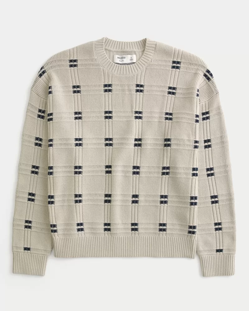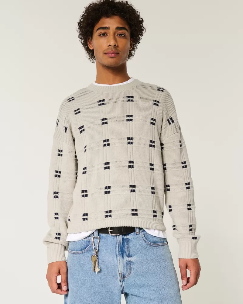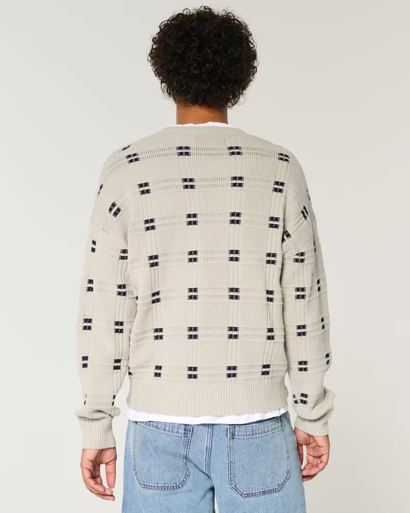 Boxy Windowpane Stitch Crew Sweater
