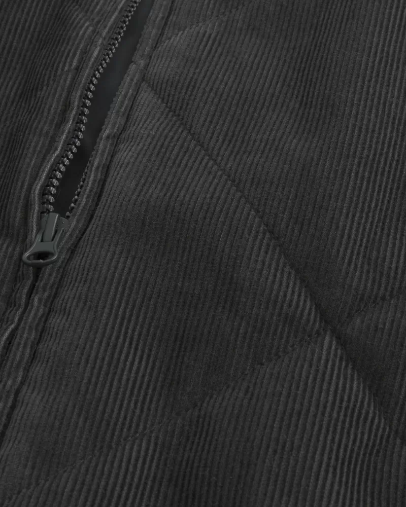 A classic jacket in quilted corduroy fabric, designed with a bomber silhouette. Full zip-up closure, pockets, banded trims, boxy silhouette.