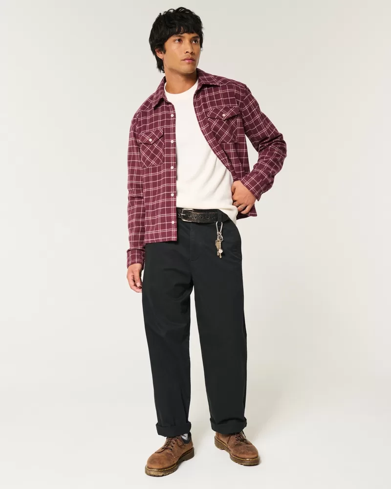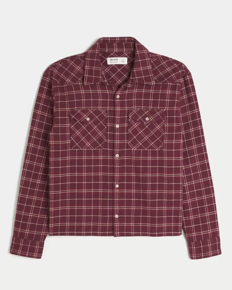 An ultra-comfortable shirt in 100% cotton flannel. Button closure, long sleeves, collar, chest pockets. Cropped length. Boxy Fit. Imported.