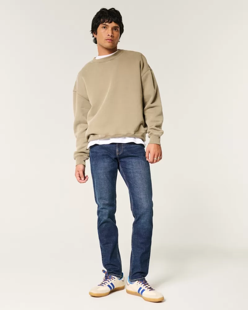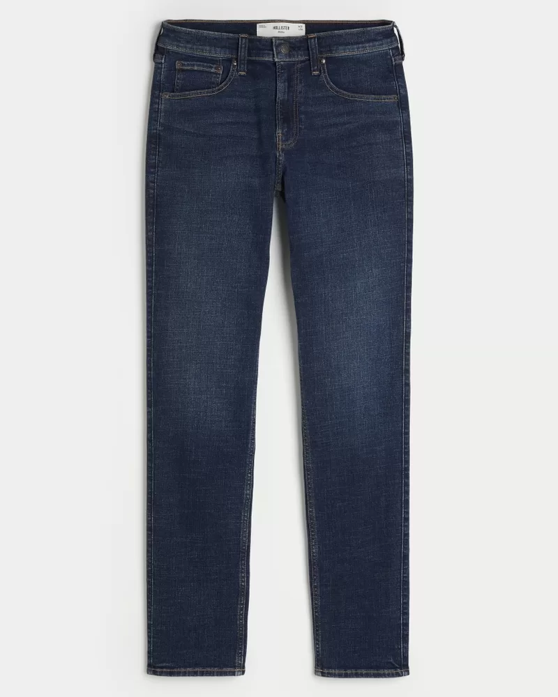 Ultra-comfortable denim jeans designed with our signature slim leg. Dark wash, fading and whiskering. Imported.