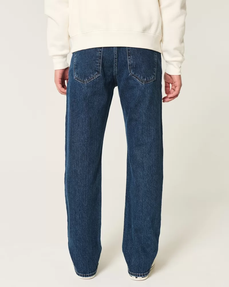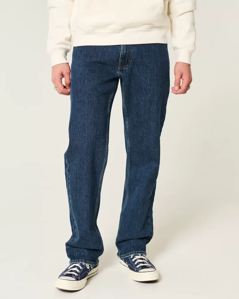 Comfortable denim jeans designed with a straight leg. Dark wash. Imported.