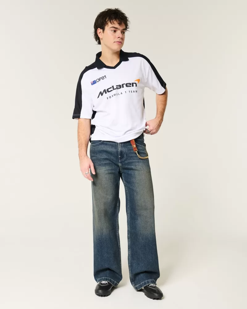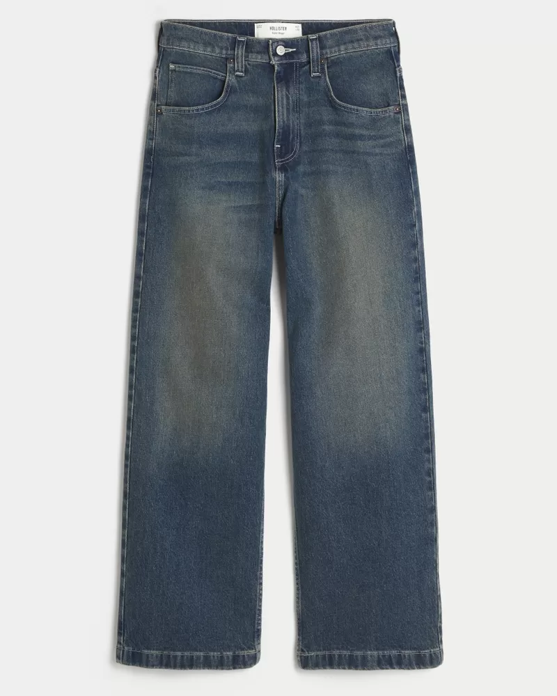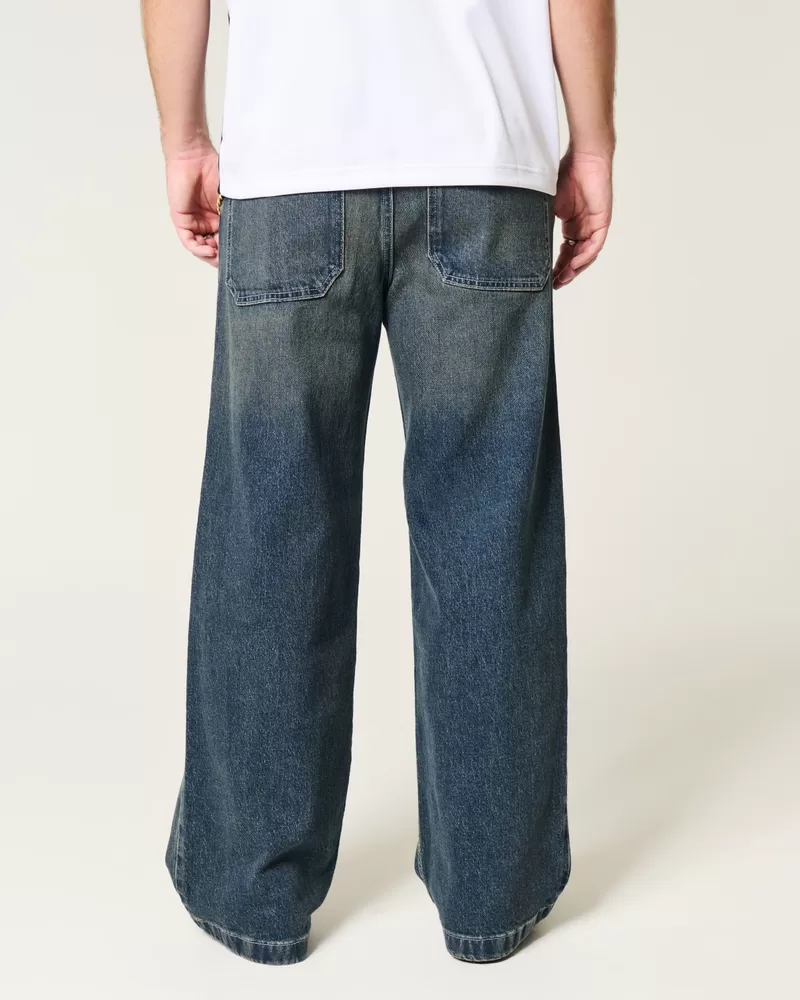 Ultra-comfortable denim jeans in a dark wash, designed with a super baggy leg. Fading. Imported.