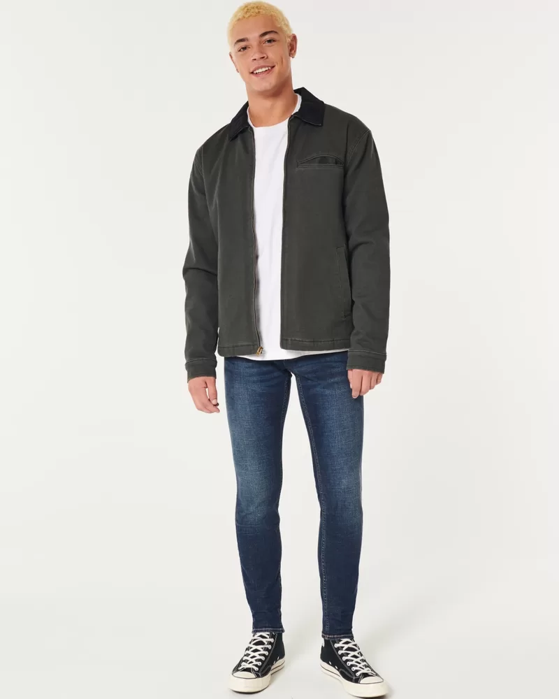 Designed with a skinny fit through the hip and thigh with a 12.75” leg opening, these jeans are made with Advanced Stretch denim, a dark wash, fading and whiskering, five-pocket styling and iconic back pocket embroidery Imported.