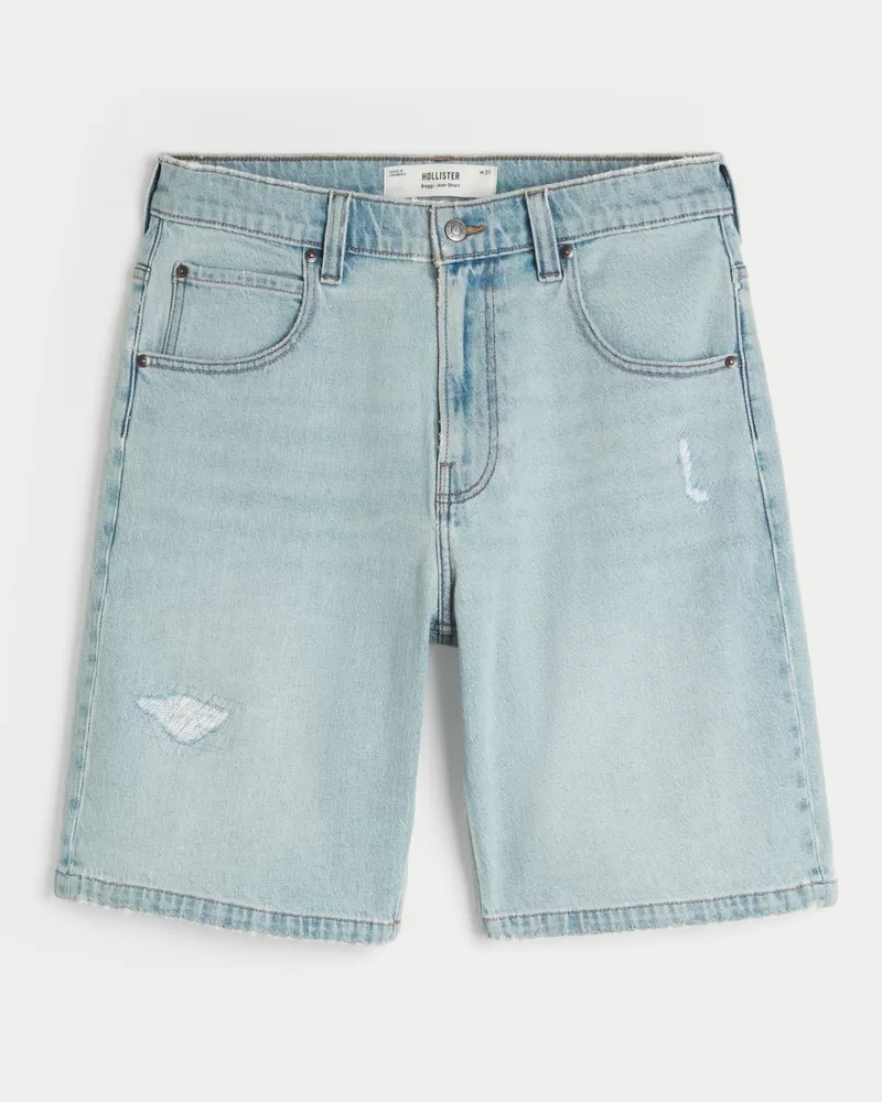 Comfortable denim jean shorts designed with a baggy leg. Fading, whiskering, distressed details. Imported.