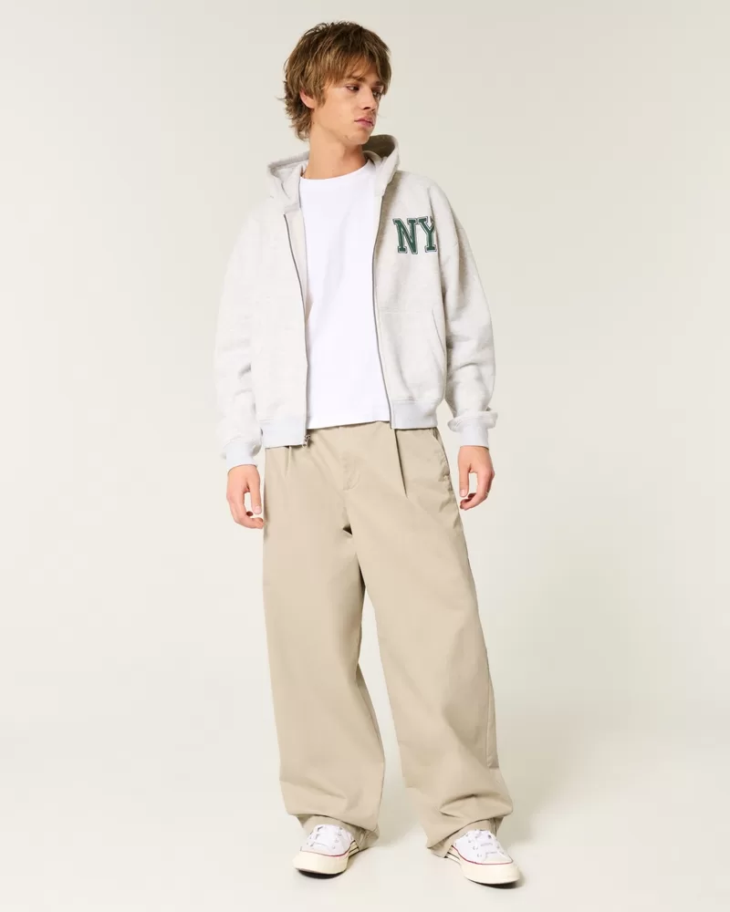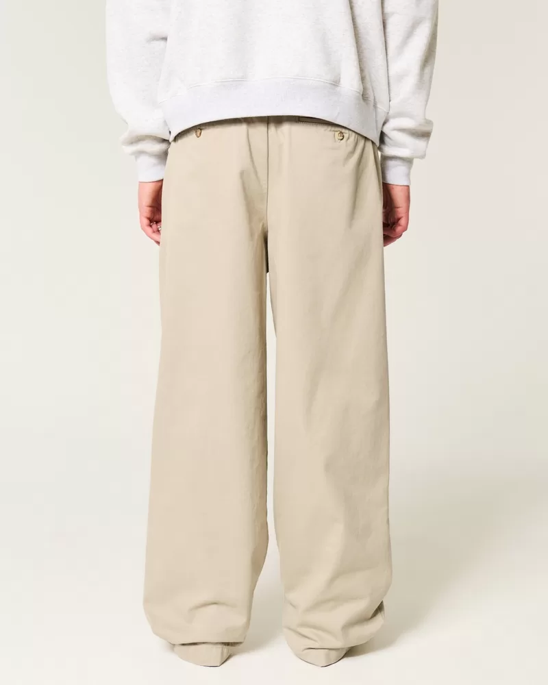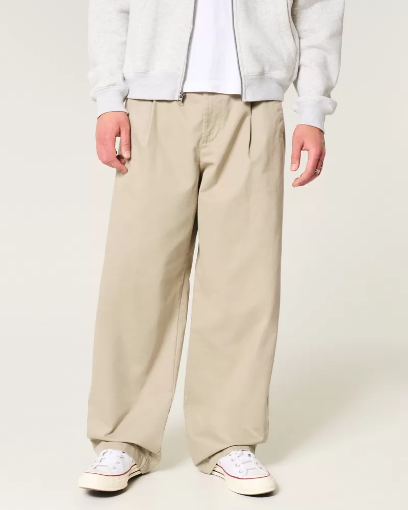 Ultra-comfortable pants in twill fabric, designed with an extreme baggy leg and a pleated waist for a tailored look. Imported.