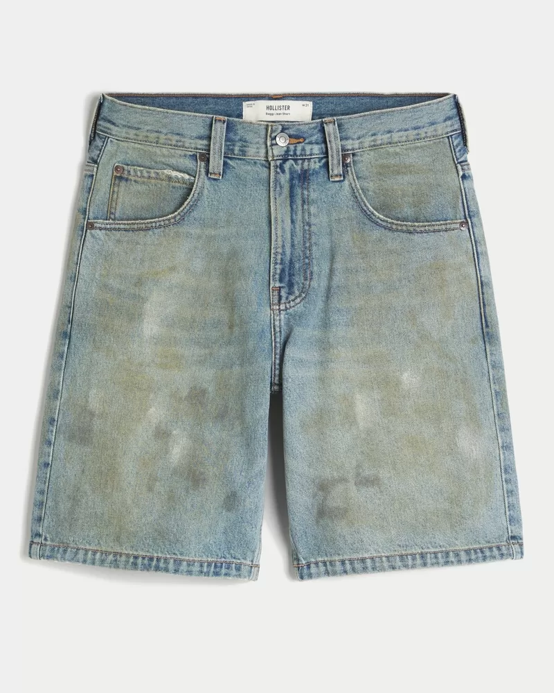 Comfortable denim jean shorts designed with a baggy leg. Fading, whiskering, all-over grease detailing. Imported.