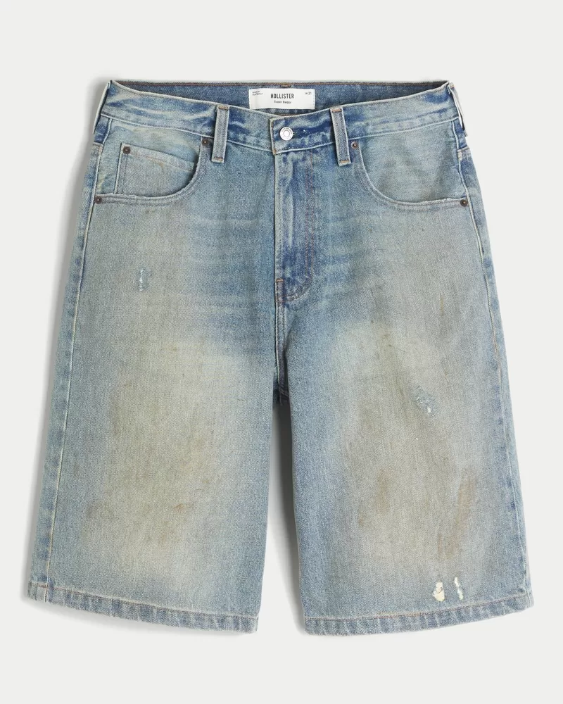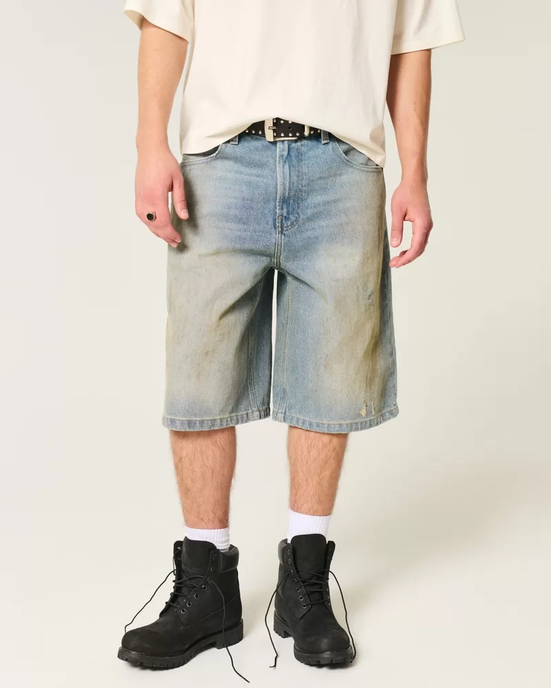 Greased Medium Wash Super Baggy Denim Shorts