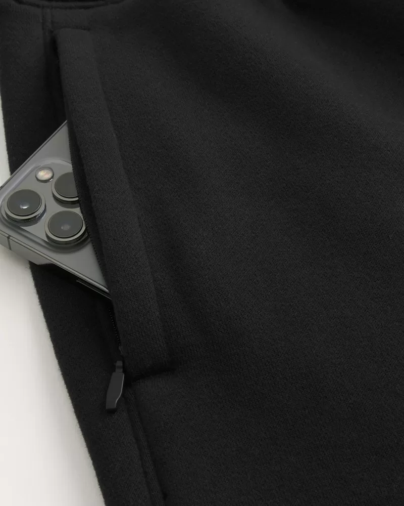 Super soft fleece joggers with a drawstring waist and banded hems. Embroidered logo icon near waist, pockets, right zipper pocket. Imported.