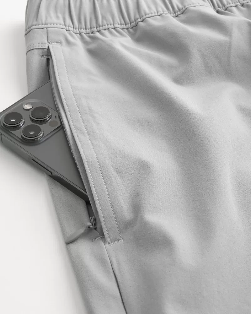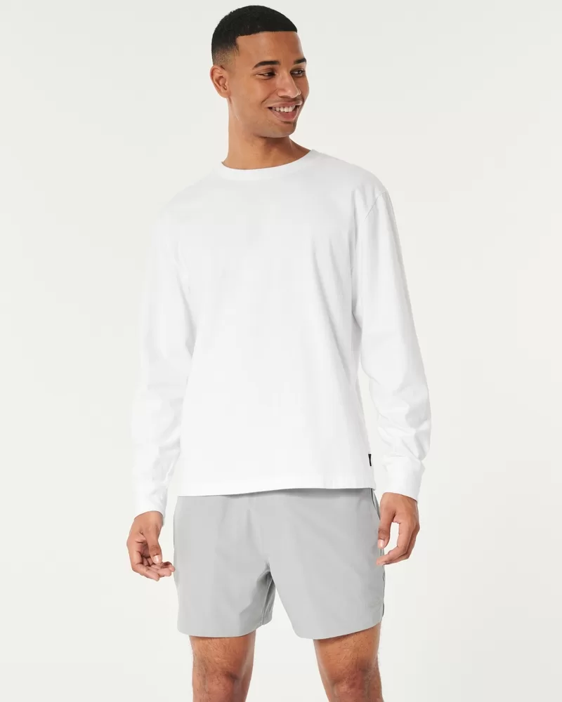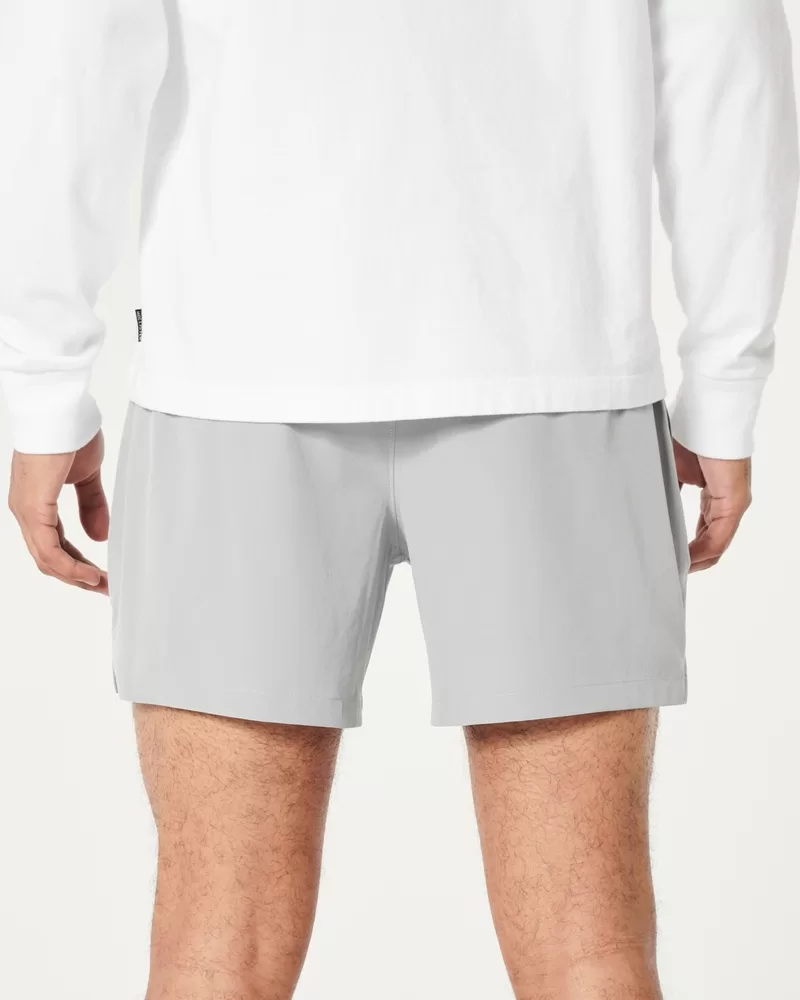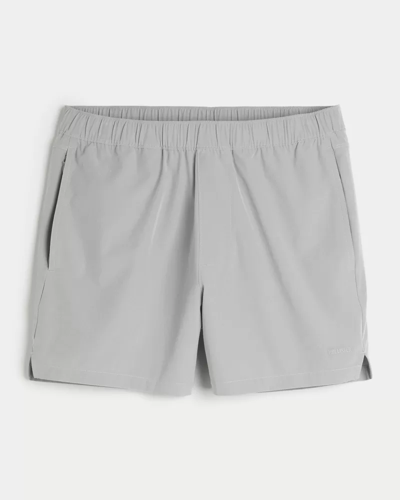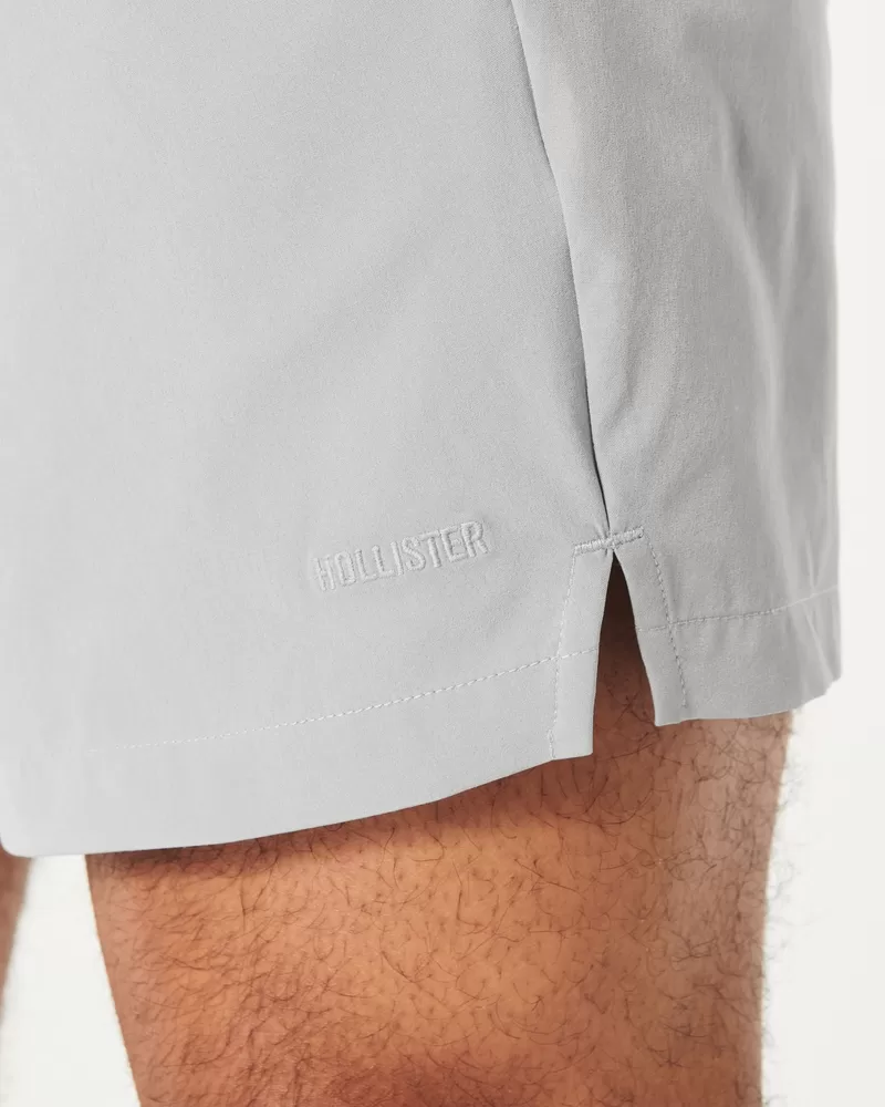 A sporty fabric makes these the most versatile shorts in your lineup for outdoor hangs, gaming, impromptu swims and everything in between. Banded waist, 5″ inseam, Hollister Epic Flex fabric, embroidered logo detail. Imported.