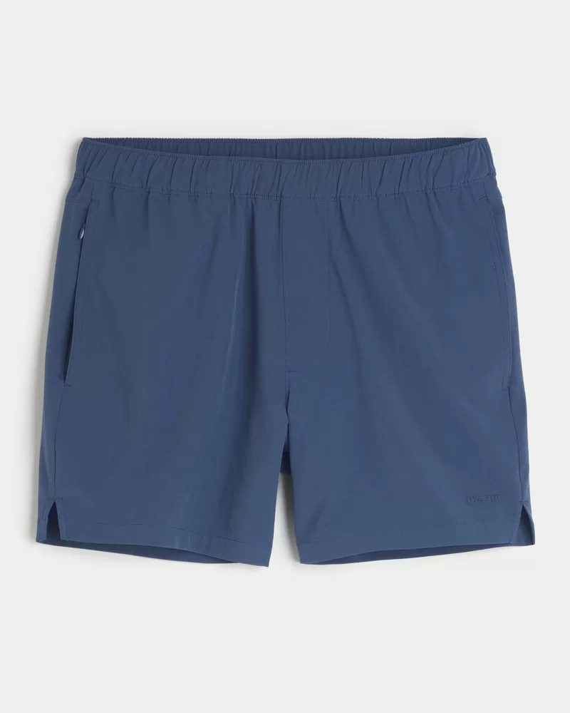 A sporty fabric makes these the most versatile shorts in your lineup for outdoor hangs, gaming, impromptu swims and everything in between. Banded waist, 5″ inseam, Hollister Epic Flex fabric, embroidered logo detail, right zipper pocket. Imported.