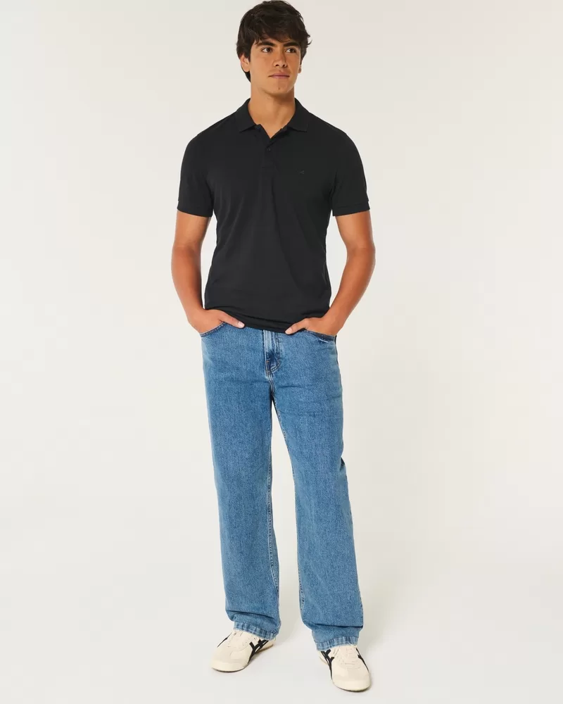 Super soft with stretch, this comfortable polo features a button placket and embroidered logo icon at left chest. Advanced Stretch pique fabric. Slim Fit. Imported.