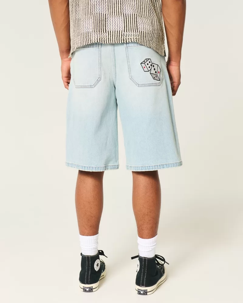Light Wash Dice Graphic Super Baggy Denim Shorts