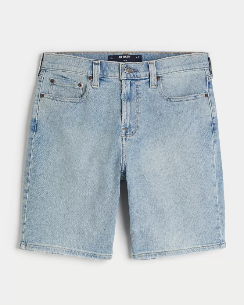 Light wash shorts in Hollister Epic Flex denim, designed with a loose fit and 9″ inseam. Fading. Imported.