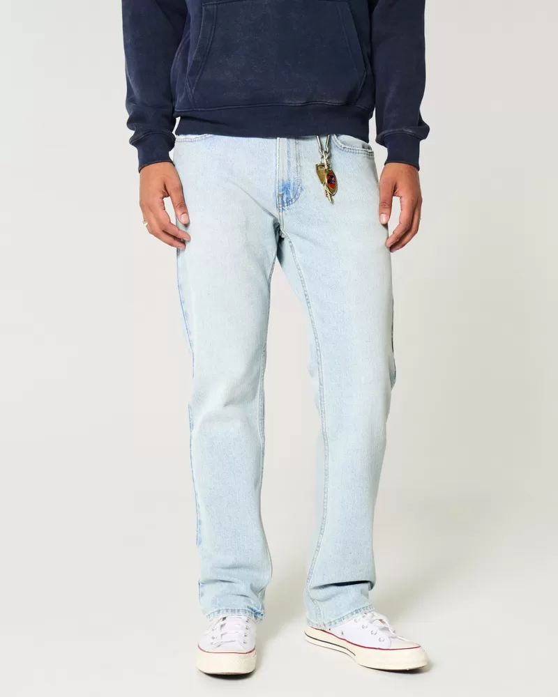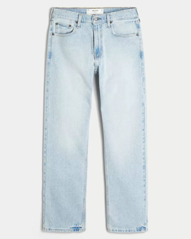 Comfortable jeans in a light wash, designed with a straight leg. Fading.