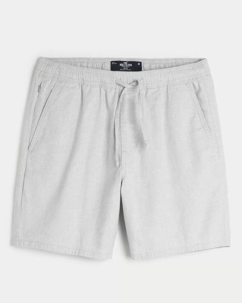 Ultra-comfortable pull-on shorts in a soft linen blend with Hollister Epic Flex stretch. Pockets, drawstring waist, right zipper pocket, 7″ inseam.