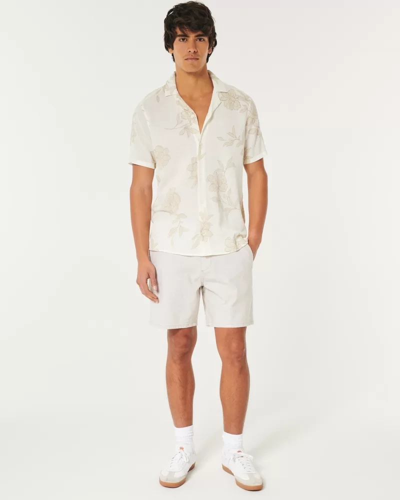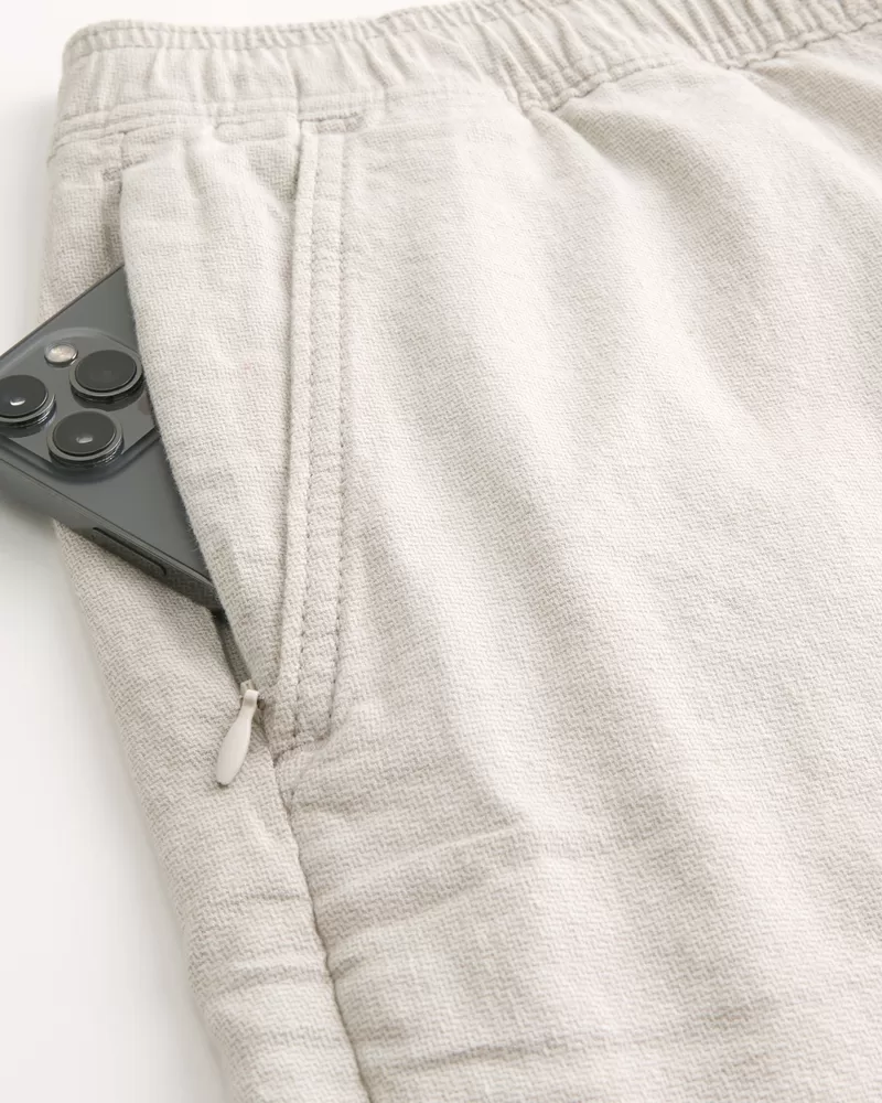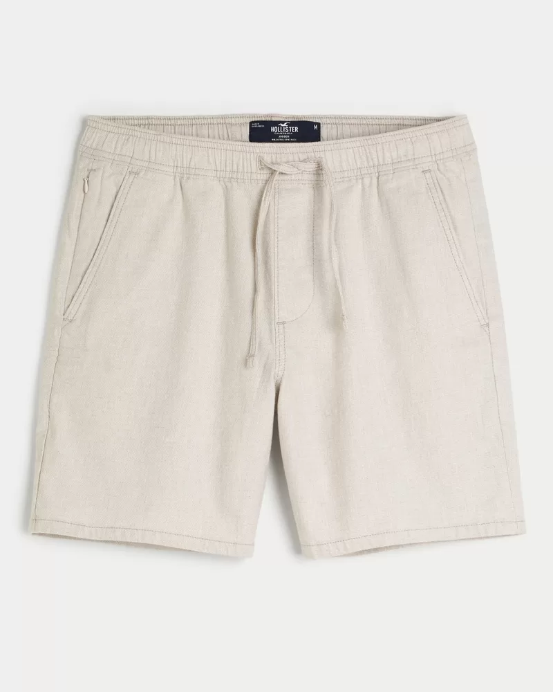Ultra-comfortable pull-on shorts in a soft linen blend with Hollister Epic Flex stretch. Pockets, drawstring waist, right zipper pocket, 7″ inseam. Imported.